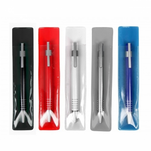 MATERIAL: Aluminio MEDIDAS PZA.: Funda: 17x3,6 cm. Boli: 14 cm. PRESENTACION INDIVIDUAL: Bolsa de plástico EMBALAJE: Cajas de 1000 uds. SUBEMBALAJE: 50 uds.