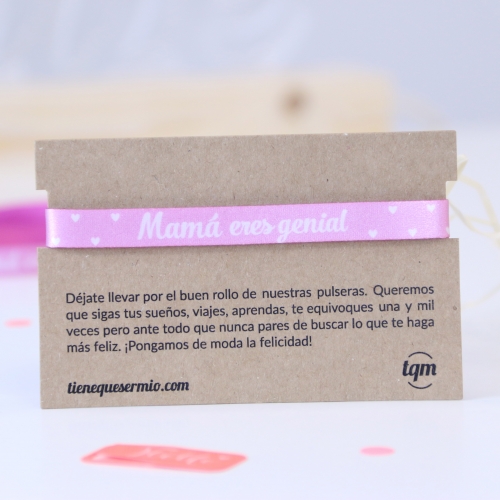 Completa tu regalo del Día de la madre o de su cumpleaños con esta pulsera tan bonita y especial. No dudes en regalarle a tu madre una pulsera de tela que la diga lo genial que es, podrás conseguirla sin perder un solo segundo en este enlace.
