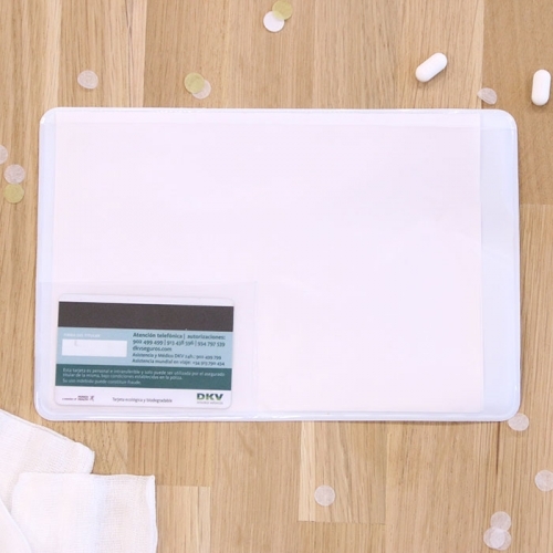 Este tarjetero se personaliza añadiendo tu logotipo con los colores de tu farmacia. Impresión a todo color.