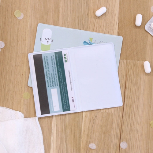 Este tarjetero se personaliza añadiendo tu logotipo con los colores de tu farmacia. Impresión a todo color.